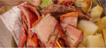 250 grs de Lechona, 200 grs de Costillitas de Cerdo, 150 grs de Chicharrdn, 3 Alitas Miel Mostaza y Papa Criolla (2 personas)
